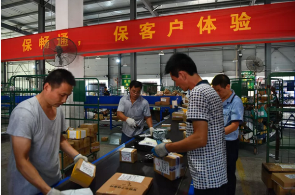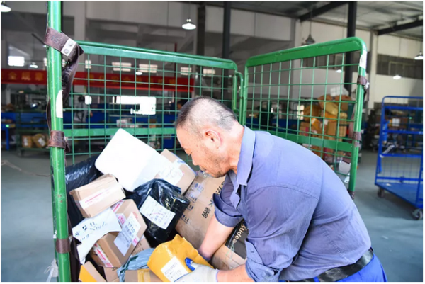 鋼結(jié)構(gòu)的處理中心在烈日的炙烤下像一座巨大的烤箱,十幾個(gè)大功率電扇吹出的是一陣陣熱浪,配合著皮帶傳輸機(jī)的轟鳴,讓人多待一會(huì)都會(huì)覺(jué)得難受。為了保證時(shí)限,大大小小的包裹都得快速分揀,分揀員們的衣服以肉眼可見(jiàn)的速度被汗水浸透,工作強(qiáng)度非常大。“每天算上加班車,我們要處理13輛郵車的郵件,有時(shí)候量多一點(diǎn)會(huì)忙到晚上十點(diǎn)后。”轉(zhuǎn)運(yùn)中心負(fù)責(zé)人程波告訴我們。