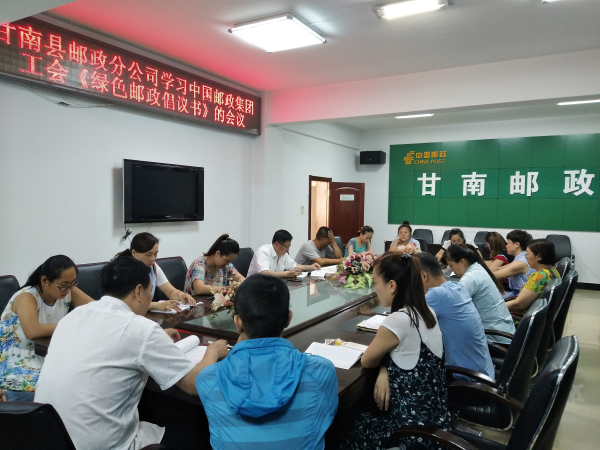 在接到中國郵政集團(tuán)工會《綠色郵政倡議書》的通知后,甘南縣郵政分公司領(lǐng)導(dǎo)班子高度重視立即行動起來。該局組織召開了全員大會,傳達(dá)了《綠色郵政倡議書》的內(nèi)容,并由工會主席做了進(jìn)一步講解,要求必須嚴(yán)格按照《倡議書》內(nèi)容落實到位并開展了系列綠色活動。