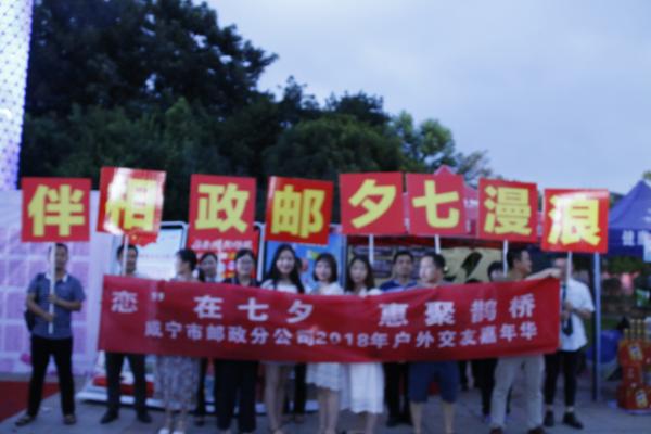 七夕之夜,咸寧市郵政工會組織15名單身青年職工參加由咸安區(qū)委宣傳部、老干局、區(qū)總工會、共青團咸安區(qū)委、區(qū)婦聯(lián)等聯(lián)合主辦的“戀在七夕”大型戶外相親交友活動。
