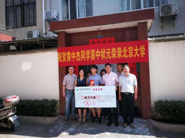 “高考狀元”黃中杰說:“無論走到哪里,我都不會忘記自己是郵政子弟。我將把郵政企業(yè)的這份關(guān)愛化作努力學(xué)習(xí)、回報社會的動力,以更加優(yōu)異的成績報效祖國!”(湖北省郵政工會)