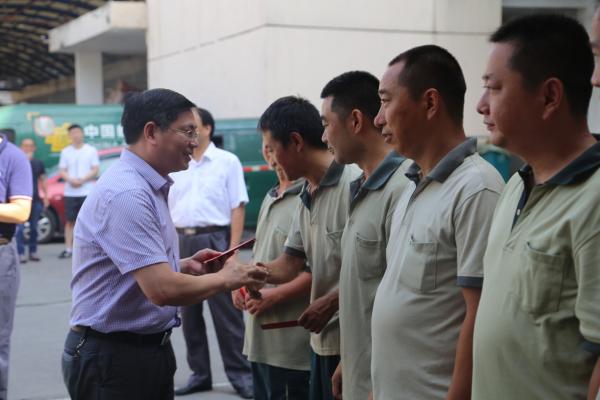 8月8日上午,宜昌市總工會(huì)副主席郭從軍一行來到宜昌分公司,先后前往伍家崗區(qū)楊岔路投遞站、速遞物流公司伍家攬投部、市分公司網(wǎng)路運(yùn)營(yíng)中心開展高溫慰問,為堅(jiān)守在一線的郵政員工送去夏日清涼。