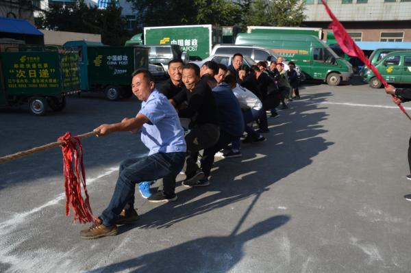 經(jīng)過緊張激烈的角逐,營業(yè)分會代表隊包攬了背部頂球接力和過河接力兩項比賽第一名;投遞分會代表隊奪得了跳繩和拔河兩項比賽第一名。