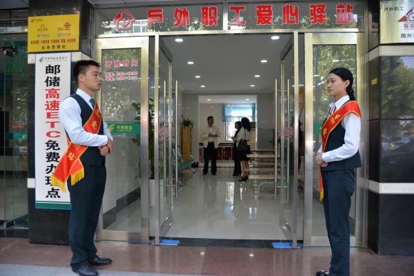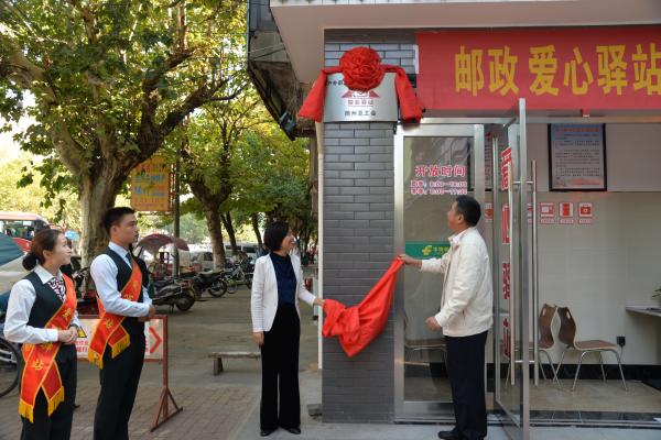 10月12日,隨州市總工會(huì)和隨州市郵政分公司舉辦“郵政愛心驛站”揭牌儀式,隨州郵政在解放路和漢東路新建的兩所戶外職工“愛心驛站”正式啟用并對(duì)外開放。市郵政分公司黨委書記、總經(jīng)理陽海龍、市總工會(huì)經(jīng)審會(huì)主任徐秀清、市總工會(huì)副主席胡艷萍、市郵政分公司副總經(jīng)理、工會(huì)主席李永燕參加揭牌儀式;同時(shí)參加揭牌儀式的還有環(huán)衛(wèi)工、快遞員代表和隨州各大新聞媒體。陽海龍和徐秀清共同為郵政愛心驛站進(jìn)行了揭牌。