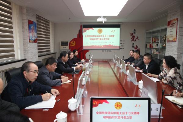 會議介紹了中國工會十七大召開的總體情況,指出這次大會是在我國進入全面建成小康社會決勝階段、中國特色社會主義進入新時代召開的一次重要會議,是全國工會和億萬職工群眾政治生活中的一件大事,對于推動新時代中國工運事業(yè)新發(fā)展具有重大的意義。會議認真學習了習近平同中華全國總工會新一屆領導班子集體談話的重要講話、李克強總理在大會上作的經(jīng)濟形勢報告、王滬寧同志代表黨中央向大會的致辭和王東明主席所作的工作報告主要精神,以及中國工會章程最新修改的主要內容。