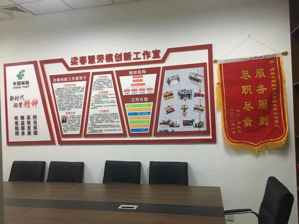 11月6日,以吉林市特等勞動模范梁春慧名字命名的“梁春慧勞模創(chuàng)新工作室”在吉林市分公司船營支局正式建成。吉林市分公司副總經(jīng)理、工會主席孫東明為工作室揭牌。當晚,梁春慧即組織船營支局成員在工作室召開第一次會議。