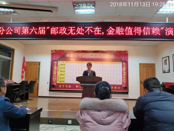 2018年11月13日晚,西安臨潼郵政工會舉辦了第六屆以“郵政無處不在,金融值得信賴”為主題的演講比賽,在二樓會議室隆重召開,21位選手帶著對郵政事業(yè)的熱愛,帶著夢想的激情,在單位舞臺上,綻放著自己的青春。她們有的從如何細致入微服務用戶,從而得到用戶的認可,給人以啟示;有的從如何發(fā)揮才智,把它行的儲蓄發(fā)展到我分公司,使金融快速發(fā)展,讓大家學到經(jīng)驗。樸實無華的語言,抒發(fā)的是點點滴滴服務郵政、兢兢業(yè)業(yè)工作一線的經(jīng)驗和啟示。