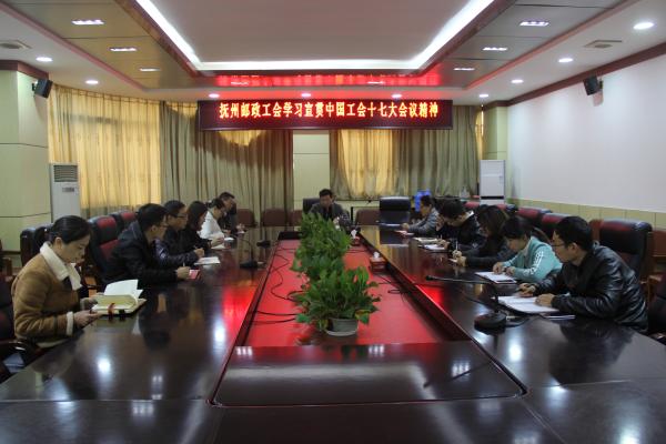 為深入學(xué)習(xí)貫徹習(xí)近平總書記重要講話精神和中國(guó)工會(huì)十七大會(huì)議精神,引導(dǎo)職工深刻領(lǐng)會(huì)和準(zhǔn)確把握中國(guó)工會(huì)十七大精神,11月9日上午,撫州郵政工會(huì)組織學(xué)習(xí)宣傳貫徹中國(guó)工會(huì)十七大會(huì)議精神,參加會(huì)議的有市分公司領(lǐng)導(dǎo)、各部門工會(huì)主席、工會(huì)委員和職工代表。
