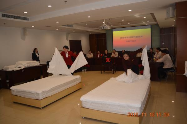 今年的崗位技能競賽活動本著節(jié)儉、適用、務(wù)實、高效的原則,以崗位練兵為基礎(chǔ),以業(yè)務(wù)培訓(xùn)為手段,以技能競賽為平臺,主要體現(xiàn)了三個特點:一是全員參與。本次崗位技能競賽從初賽到?jīng)Q賽,共有220多名員工分別參加了20個項目的比賽,其中60名員工分獲一二三等獎,有1組選手獲得團體獎。二是重在練兵??头坎亢凸こ滩看蚱茘徫唤缦?,要求員工“一專多能”,不僅熟練掌握本崗位技能,還要熟練操作本部門其他崗位技能,為今后的崗位調(diào)配和忙碌時的人員綜合利用打下了基礎(chǔ)。三是推陳出新??头坎坑汕芭_、會議、房務(wù)、保潔等崗位人員組團成為競賽小組,六組隊員在理論和實操上進行對決。餐飲部今年推出了自選菜品,廚師們開動腦筋,精雕細琢,涌現(xiàn)了多道“高、精、細”的菜肴。餐飲中餐擺臺更加突出宴會主題設(shè)計,通過口布折花的樣式、色彩與主題相呼應(yīng),烘托宴會氣氛,體現(xiàn)服務(wù)的規(guī)范化。工程部的消防演練采用情景模擬,將每一步的規(guī)范操作展現(xiàn)的淋漓盡致,提高了消防應(yīng)急處置能力,前期還創(chuàng)新制作了高壓配電技能模擬操作板,不僅把實際工作場景搬到了競賽現(xiàn)場,也為平時的員工培訓(xùn)建立了基礎(chǔ)。