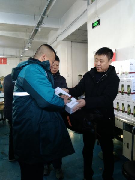 這樣關(guān)鍵時(shí)點(diǎn),這樣的困難時(shí)期,更是時(shí)刻牽動(dòng)著市分公司領(lǐng)導(dǎo)的心,謝瑛華總經(jīng)理數(shù)次親臨現(xiàn)場(chǎng)看望職工,用溫暖的話語(yǔ)鼓舞職工們的氣勢(shì),用實(shí)際行動(dòng)溫暖職工。時(shí)至小雪,雪至溫降,但投遞員的心里卻是暖意融融,11月22日,謝瑛華總經(jīng)理帶領(lǐng)市郵政工會(huì)一行,帶著對(duì)員工的關(guān)心與關(guān)愛(ài),來(lái)到網(wǎng)運(yùn)和投遞現(xiàn)場(chǎng),每到一處,謝總都親切地與職工交流,全面了解雙十一工作進(jìn)展情況。工會(huì)為每一名投遞員送來(lái)了保溫水杯,讓他們?cè)诤涞亩炷芎壬蠠崴?;給每一名外勤投遞人員配置了護(hù)手、護(hù)腿,有效的抵御嚴(yán)寒;為網(wǎng)運(yùn)和投遞員工送來(lái)了火腿腸、方便面、面包、酥餅等慰問(wèn)品,避免大家餓著肚子工作。領(lǐng)導(dǎo)體貼入微的關(guān)懷深深感動(dòng)并鼓舞著每一個(gè)員工。