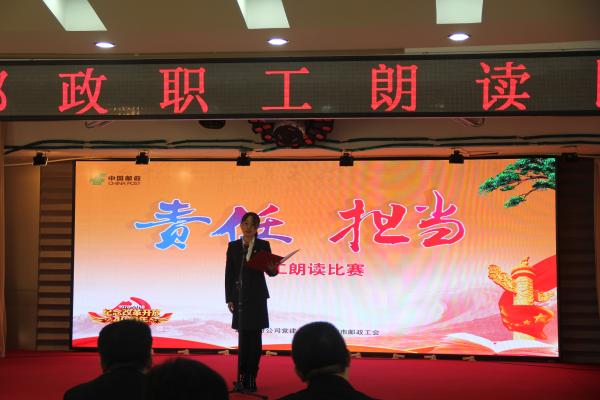 為慶祝改革開放40周年,落實新時代遼寧精神, 推進讀書活動,打造書香企業(yè),激發(fā)職工敢挑重任、勇于擔當?shù)墓ぷ鳠崆椋?2月12日,盤錦市分公司黨委和市分公司工會聯(lián)合舉辦了盤錦郵政職工“責任 擔當”主題經(jīng)典朗讀比賽。
