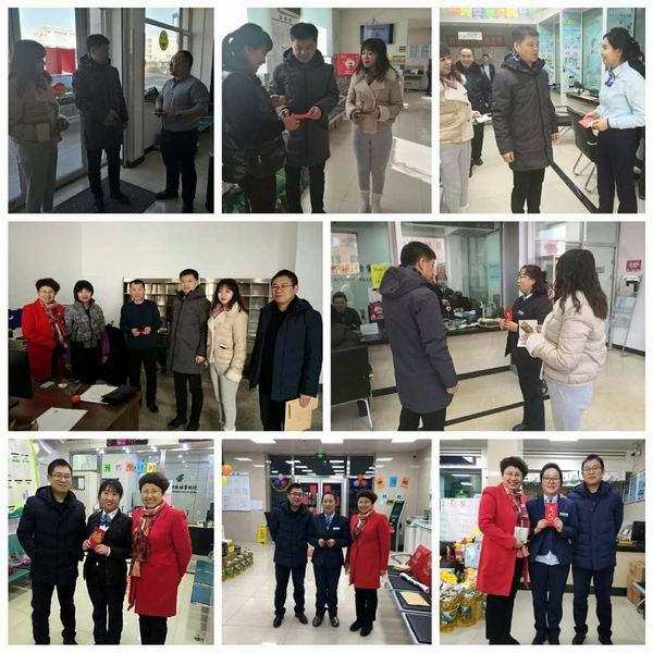 12月31日,在2018年的最后一天,敦化市分公司領(lǐng)導(dǎo)班子分成兩個(gè)慰問(wèn)組,分赴全市21個(gè)基層網(wǎng)點(diǎn)開(kāi)展年末走訪慰問(wèn)活動(dòng),為一線員工送去新年的祝福和慰問(wèn)金。每到一處網(wǎng)點(diǎn),慰問(wèn)組都詳細(xì)詢問(wèn)員工們的生產(chǎn)生活情況,對(duì)節(jié)日期間廣大員工依然堅(jiān)守在工作崗位,舍小家為大家的辛勤付出表示感謝,并為員工們送上了真摯的祝福。同時(shí),認(rèn)真安排部署保險(xiǎn)開(kāi)門紅搶量工作,鼓勵(lì)廣大員工立足崗位、再創(chuàng)佳績(jī),爭(zhēng)做貢獻(xiàn)。(吉林郵政工會(huì))