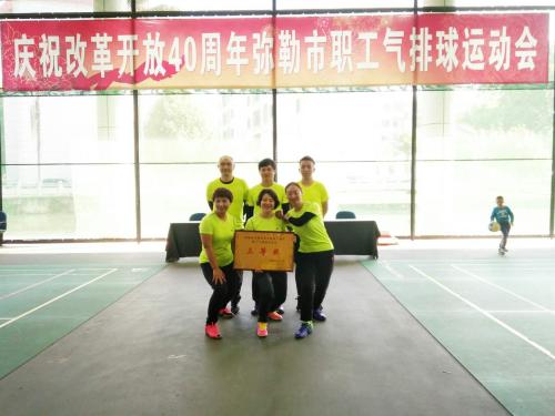 彌勒分公司為了加強與各單位的溝通聯系,鍛煉隊伍,展示企業(yè)形象,組隊參加全市職工氣排球運動會。在比賽中,敢打敢拼、團結拼搏、從不氣餒。在場外,互相溝通交流,切磋攻防技巧,場上是對手、場下是朋友。經過3天的激烈角逐,取得了第七名的好成績。