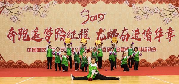 隨著一曲《舞動的青春》,一群朝氣蓬勃的郵政女員工用他們自信而富有活力的舞蹈拉開了趣味運動會的序幕。趣味運動會首先進行的是團隊展示,6支團隊或舞蹈、或祝福、或手持對聯(lián)、或揮舞隊旗,以新穎的形式展現(xiàn)著自我,充滿著智慧和力量。6支團隊的精彩展示已經(jīng)悄悄地為趣味運動會醞釀著“一戰(zhàn)到底”的比拼氛圍。聽,擂鼓聲中,趣味運動會賽事正式打響。