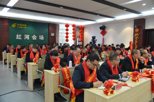 2019年1月21日,紅河州分公司會(huì)議室紅紅火火、喜氣洋洋,全州郵政2018年代理金融表彰大會(huì)暨2019年誓師大會(huì)在這里召開。會(huì)議由州分公司副總經(jīng)理余鎮(zhèn)主持,州分公司總經(jīng)理李朝輝、調(diào)研員李騰云,副總經(jīng)理、工會(huì)主席瞿志華及全州各縣區(qū)、專業(yè)的領(lǐng)導(dǎo)和職工代表出席了表彰會(huì)。