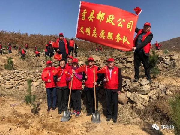 為認(rèn)真貫徹落實“綠色發(fā)展”理念和日照市委市政府“生態(tài)立市”戰(zhàn)略。3月13日,日照市郵政分公司組織干部員工在嵐山區(qū)中樓鎮(zhèn)潯河峪綠化現(xiàn)場植樹點開展植樹造林活動,為全市生態(tài)建設(shè)再添新綠。早上7點整,市分公司李獻(xiàn)成副總經(jīng)理與各部門選派的18名干部員工一起趕往植樹活動現(xiàn)場。植樹現(xiàn)場,參加植樹的人員揮锨鏟土,扶苗填坑、培土夯苗、踩實澆水,每一道工序都做得認(rèn)真到位,大家分工協(xié)助,相互配合,現(xiàn)場一派熱火朝天的忙碌景象。經(jīng)過大家兩個多小時齊心協(xié)力的勞動, 近300株松樹苗全部栽植完成,原本黃土斑駁的荒山披上了綠裝,變得生機盎然。與此同時,莒縣和五蓮郵政分公司也在植樹節(jié)當(dāng)天開展了義務(wù)植樹活動。通過此次義務(wù)植樹活動,全市郵政干部員工牢固樹立了愛綠植綠護(hù)綠的意識,深刻踐念。