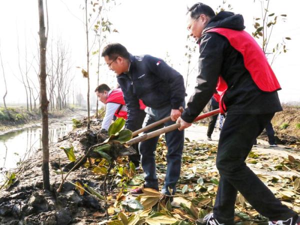 在活動現(xiàn)場,大伙們一起挖樹坑、扶樹苗、培土固基、圍堰澆水,共植玉蘭樹50余棵,對溝渠和堤坡起到了兩岸添綠和防水土流失的雙重效果。