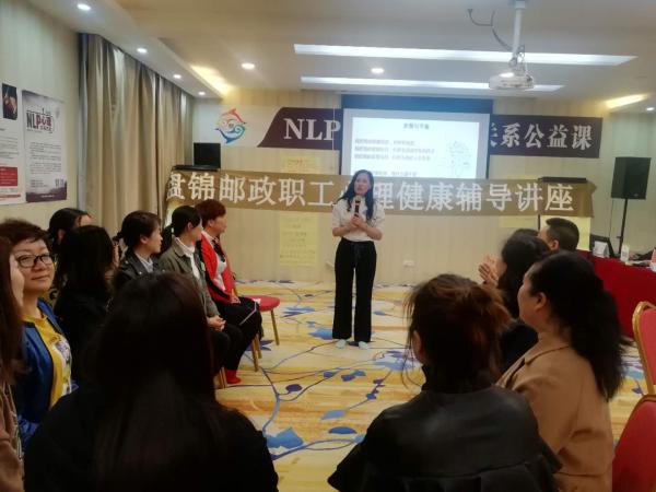 3月28日在盤錦市慧?!ぞ辰缂彝テ髽I(yè)成長中心舉辦了首場盤錦市郵政職工心理健康輔導(dǎo)講座,市公司來自不同崗位的26名職工參加了講座。此次講座聘請了亞洲應(yīng)用心理學(xué)學(xué)院導(dǎo)師、盤錦市慧睿教育家庭成長學(xué)院院長、國家二級心理咨詢師李悅導(dǎo)師授課。此次講座以NLP幸福家----“家庭關(guān)系”為主題,從互動的小游戲開始,讓參加的職工完全放松心情,融入到學(xué)習(xí)中。講座打破以往上聽下講單一的授課模式,而是采取體檢式數(shù)學(xué),根據(jù)家庭中的成員讓學(xué)習(xí)的職工進(jìn)行人物轉(zhuǎn)換,通過互動游戲、人物扮演、分組討論、暢談感受等多種方式進(jìn)行。尤其當(dāng)前職工在親子關(guān)系和子女教育方面都存在著非常大的困惑,針對這個問題,導(dǎo)師通過人物轉(zhuǎn)換的方式讓大家感受孩子分別在父母的指責(zé)、贊許、關(guān)心和冷漠時的狀況,角色的轉(zhuǎn)換給每一個職工都帶來了心靈的震撼和極大的觸動,讓參與學(xué)習(xí)的職工發(fā)現(xiàn)了自身存在的問題,學(xué)會了換位思考。