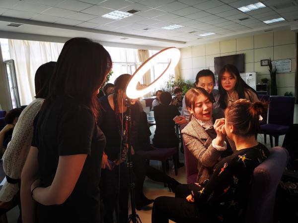 化妝培訓(xùn)圍繞“化妝技巧”、“個(gè)人服飾色彩搭配”等幾個(gè)方面進(jìn)行講解。培訓(xùn)老師通過(guò)現(xiàn)場(chǎng)模特化妝演示,為大家講解化妝品的正確使用方法以及不同膚色、不同臉型的化妝技巧等,贏得了現(xiàn)場(chǎng)觀眾的熱烈好評(píng)。講座結(jié)束后,女職工們熱情不減,紛紛向老師請(qǐng)教眉筆、口紅顏色的選擇等問(wèn)題,老師熱情的幫助女職工們逐一解答。