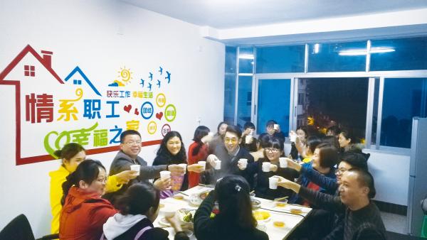 原來,結(jié)束了一天忙碌的工作后,渝北分公司“掛包幫”人員正和網(wǎng)點員工一起,為同事們“開小灶”。大家分工均勻,有的炒料,有的洗菜,有的切菜,有的擺盤,忙得不亦樂乎!不多時,鮮香麻辣的火鍋出爐,大家圍坐在一起親如家人,熱熱鬧鬧地邊吃邊聊。先回“家”的,自夸廚藝好,晚回“家”的,自覺舉手洗碗……歡聲笑語間,每個人臉上都洋溢著幸福的笑容。在這個溫暖的“家”里,美味的食物滿足了胃,幸福的相聚溫暖了心,大家齊齊舉起手中的可樂,祝愿工作蒸蒸日上、日子越過越火!