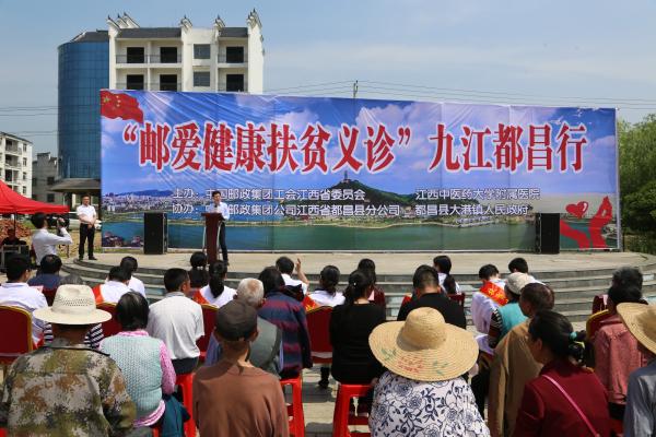 4月20日,由江西省郵政工會、江西郵政報社、江西中醫(yī)藥大學(xué)附屬醫(yī)院志愿者聯(lián)合主辦,九江市郵政工會、都昌縣縣政府、都昌縣大港鎮(zhèn)人民政府共同協(xié)辦的“郵愛健康扶貧義診”活動在九江市都昌縣大港鎮(zhèn)舉行,來自江西省中醫(yī)藥大學(xué)附屬醫(yī)院的11名醫(yī)生和護(hù)師組成的醫(yī)護(hù)志愿者服務(wù)隊,為當(dāng)?shù)乩习傩账歪t(yī)、送藥、送健康,將健康扶貧送到了老百姓的家門口。都昌縣人大副主任向重新,省郵政工會副主席胡萍,省分公司辦公室副總經(jīng)理、江西郵政報社社長蔡兆清,省分公司企發(fā)部副總經(jīng)理李越珂,九江市分公司副總經(jīng)理、工會主席喻剛,大港鎮(zhèn)鎮(zhèn)長江華林,大港鎮(zhèn)黨委副書記黃禹等領(lǐng)導(dǎo)出席了活動啟動儀式。