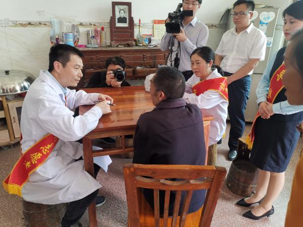活動期間,醫(yī)護(hù)志愿者服務(wù)隊還為大港鎮(zhèn)大港村謝貴寶、謝任水等身患長期慢性病的貧困戶,提供上門醫(yī)療問診、送醫(yī)送藥服務(wù)。醫(yī)生為他們做了詳細(xì)的檢查,為下一步的治療方案提供了指導(dǎo)意見。