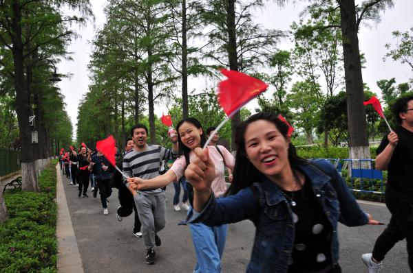 參觀學習結(jié)束后,在四面鮮紅旗幟的帶領下,大家集體前往東湖綠道開展了“健步走”活動?;顒又?,大家分為兩隊,有序前行。6公里的行進路程,大家時而口號聲聲、時而紅歌嘹亮、時而小憩留影、時而瘋狂暴走,在湖邊綠道上形成了一道靚麗的風景線,引得路人頻頻觀望、駐足拍照,湖北郵政青年員工朝氣蓬勃、積極向上的青春風貌一展無遺。