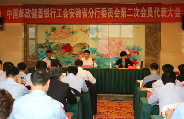 2019年4月25日至26日, 中國(guó)郵政儲(chǔ)蓄銀行工會(huì)安徽省分行委員會(huì)第二次會(huì)員代表大會(huì)在合肥勝利召開(kāi)。全分行各級(jí)工會(huì)組織負(fù)責(zé)人、省分行部分部門(mén)主要負(fù)責(zé)人、勞模先進(jìn)代表、管理人員代表、工會(huì)工作者代表和一線員工代表等共計(jì)93名會(huì)員代表參加了大會(huì)。