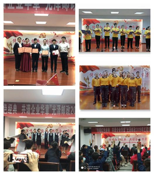 為傳承紅色精神,獻(xiàn)禮祖國70周年華誕。5月8日晚在五樓會(huì)議廳,光澤縣分公司工會(huì)組織職工開展以“傳唱紅色經(jīng)典 共譜企業(yè)華章”為主題的紅色經(jīng)典歌曲大賽活動(dòng),來自全縣郵政120余名干部職工參加了活動(dòng)?;顒?dòng)現(xiàn)場(chǎng)彩旗招展,激情四射,隆重?zé)崃?。大賽首先?duì)獲得2019年市分公司首季度經(jīng)營(yíng)競(jìng)賽獎(jiǎng)項(xiàng)的先進(jìn)集體和個(gè)人進(jìn)行表彰。隨后,歌詠大賽在雄壯激昂的樂曲聲中拉開序幕。來自機(jī)關(guān)、網(wǎng)點(diǎn)支局的10支參賽隊(duì)伍,他們激情滿懷,斗志昂揚(yáng)、歌聲嘹亮,熱情飽滿地演繹著《歌唱祖國》、《我和我的祖國》、《我的中國心》等一首首耳熟能詳?shù)母枨宫F(xiàn)舞臺(tái),充分展現(xiàn)光澤郵政人熱愛祖國,一心向著共產(chǎn)黨的雄心壯志;光澤大學(xué)生筑夢(mèng)團(tuán)隊(duì)朝氣蓬勃,用鏗鏘有力的詩歌朗誦,深情詮釋著五四精神,展露青年職工朝氣蓬勃,積極向上的活力和風(fēng)采,臺(tái)下觀眾深受感染,凡響共鳴,響起一陣陣熱情的掌聲?;顒?dòng)中,還穿插了黨建知識(shí)搶答,現(xiàn)場(chǎng)職工積極參與,踴躍搶答,將活動(dòng)撳起了一個(gè)高潮。