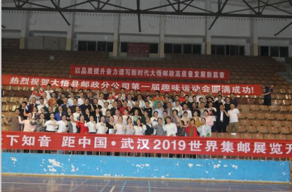 在整場活動(dòng)中,大悟分公司領(lǐng)導(dǎo)干部均以普通運(yùn)動(dòng)員的身份參與到團(tuán)隊(duì)比賽當(dāng)中,與全體員工一起流汗奔跑。大家盡情享受著運(yùn)動(dòng)的樂趣,徹底釋放了工作中的壓力,真正體現(xiàn)了“我流汗 我健康 我幸福”全員健身活動(dòng)的主題?,F(xiàn)場氣氛熱烈,場內(nèi)外打成一片,活動(dòng)最終在160多名郵政運(yùn)動(dòng)員高呼“發(fā)展有位次、企業(yè)有效益、工作有特色、品牌有影響”的響亮口號圓滿閉幕。