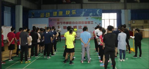 為進(jìn)一步豐富職工文體活動(dòng),落實(shí)人人都有一個(gè)流汗項(xiàng)目,增強(qiáng)團(tuán)隊(duì)協(xié)作精神,5月17日,咸寧市郵政分公司首屆職工羽毛球比賽在咸寧地質(zhì)隊(duì)羽毛球館隆重舉行。比賽項(xiàng)目共分為男子單打、女子單打等2個(gè)項(xiàng)目,共有8支代表,60余名運(yùn)動(dòng)員及教練員參加比賽。
