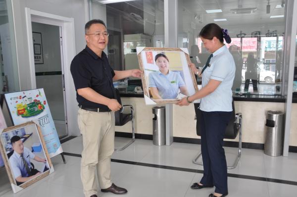 “真的很開心,平時都忙著上班,很少有機(jī)會看到自己工作時的樣子,感謝領(lǐng)導(dǎo)的關(guān)注,這張照片我要好好珍藏?!苯衲?4歲的夏嫻,2006年進(jìn)入郵政,現(xiàn)在是瓦坊支局的一名儲蓄柜員。7月8號,對夏嫻來說,是一個特別的日子,這天下午,她從市分公司副總經(jīng)理、工會主席郭大江手中接過一張自己的照片。照片中,她手拿宣傳單頁,正準(zhǔn)備出去走訪,笑容親切,充滿感染力。