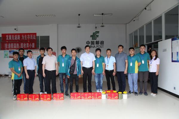 抵達(dá)南河攬投部時(shí),張國(guó)壽一行和攬投員們一一握手,代表省分公司黨組向基層一線員工表示致敬,并為他們送上了綠豆、白糖、飲料等防暑降溫慰問(wèn)品,把省分公司黨組的深切關(guān)懷送到基層一線。張國(guó)壽與攬投部負(fù)責(zé)人、攬投員進(jìn)行了親切交談,強(qiáng)調(diào)在確保投遞時(shí)限的同時(shí),要時(shí)刻銘記生產(chǎn)安全,并囑咐景德鎮(zhèn)市分公司要切實(shí)關(guān)心一線員工身心健康,采取有效措施防暑降溫,解決基層一線員工的實(shí)際困難,確保生產(chǎn)安全和穩(wěn)定。