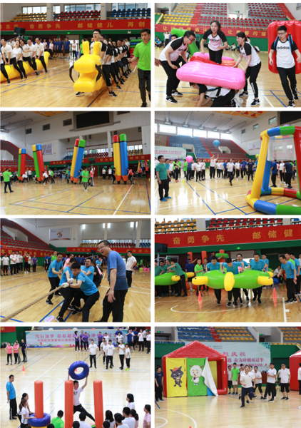 本次趣味運動會全市共有來自各支行和市分行機關(guān)三個隊共16個代表隊參賽。運動會共設(shè)有“旱地龍舟”、“萬眾一心”“快樂鉛筆”、“趣味投籃”、“龜兔賽跑”、“超級漢諾塔”、“智取蘿卜”、“飛鏢足球”、“拔河”九個比賽項目。各參賽項目采用單項積分和總積分的方式確定比賽成績,最后累計總分按分數(shù)高低排列名次。設(shè)單項團體獎、綜合團體獎和優(yōu)秀組織獎,