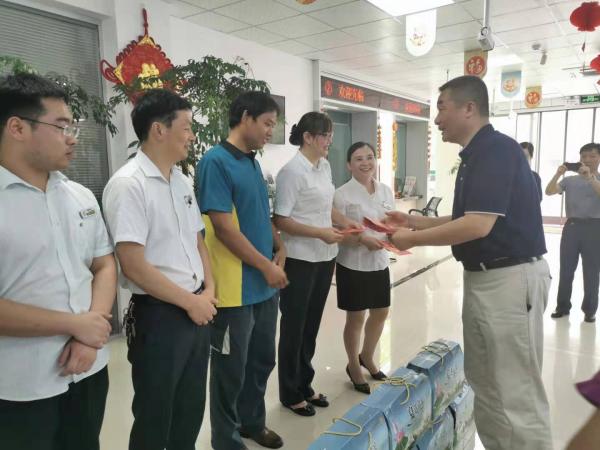 盛夏時(shí)節(jié),驕陽似火。8月7日,省分公司副總經(jīng)理熊榮一行來到鄂州,先后深入到楊葉郵政支局、壽昌郵政支局、石山投遞站、江廣投遞站慰問戰(zhàn)斗在一線的郵政員工。為基層員工送上慰問清涼盒及慰問金,并帶來省公司黨組的慰問及親切關(guān)懷。省公司寄遞事業(yè)部運(yùn)管部總經(jīng)理龐子培、省公司轉(zhuǎn)型辦張凌陪同慰問。
