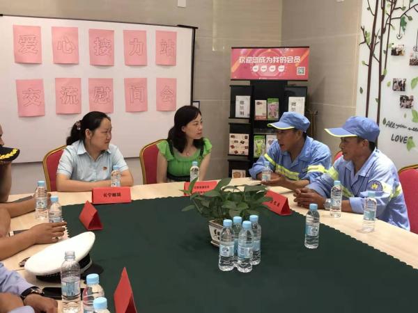 2019年8月13日上午9:30,長寧郵政支局聯合江蘇街道社區(qū)黨建服務中心,在長寧郵政支局活動室,共同開展愛心接力站慰問交流會。 希望能借此了解一線戶外工作者的日常,面對面傾聽他們對愛心接力站使用至今的想法以及改善建議。長寧郵政支局支局長曹雯,支部書記黃芳親自出席該活動,為交通協管員們,環(huán)衛(wèi)工人代表送上夏日慰問禮品,表達了對他們工作的高度認可,感謝他們?yōu)檫@座城市的默默付出。