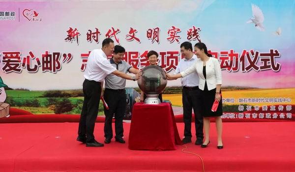 為進(jìn)一步弘揚(yáng)雷鋒精神,鼓勵廣大群眾積極參與志愿服務(wù)。8月12日上午,磐石市新時代文明實踐“愛心郵”志愿服務(wù)項目啟動儀式在磐石市郵政分公司舉行。吉林市委宣傳部副部長王媛,磐石市委副書記周錫利,磐石市委常委、宣傳部部長張峰,吉林市分公司副總經(jīng)理孫東明,磐石市分公司總經(jīng)理王宇等領(lǐng)導(dǎo)出席啟動儀式。磐石市分公司投遞員、市委宣傳部、各鄉(xiāng)鎮(zhèn)相關(guān)負(fù)責(zé)同志及部分愛心人士代表參加啟動儀式。