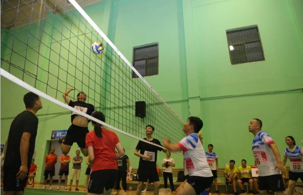 比賽開始前,現(xiàn)場(chǎng)就已經(jīng)熱鬧非常。各參賽隊(duì)員或聚在一起排兵布陣,或臨時(shí)組隊(duì)預(yù)熱練習(xí)……一聲令下,各參賽隊(duì)員紛紛摩拳擦掌,精神抖擻走上賽場(chǎng),全神貫注、蓄勢(shì)待發(fā)。高拋發(fā)球、迅猛接球、穩(wěn)健二傳、急速扣殺……每一位隊(duì)員都全力以赴,默契配合,展現(xiàn)了良好的團(tuán)隊(duì)協(xié)作精神和競(jìng)技風(fēng)貌。場(chǎng)上廝殺淋漓酣暢,場(chǎng)下啦啦隊(duì)助威跌宕起伏,整個(gè)場(chǎng)面熱火朝天。