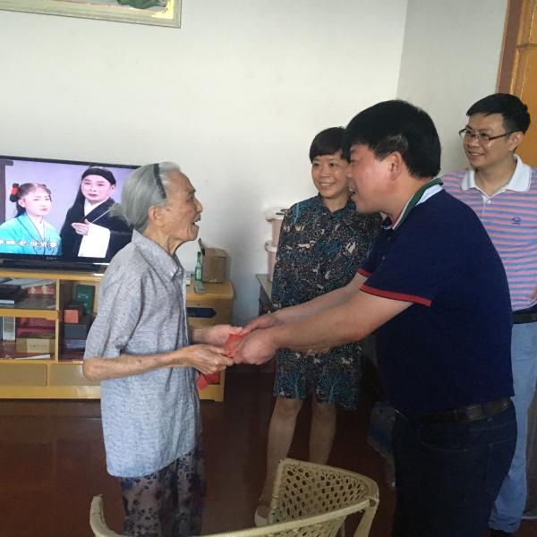 隨后,盧東一行來到退休職工徐光輝父親家中,為92歲高齡的徐老送去了慰問和祝福,并囑咐徐老保重身體,樂享晚年。(江西省郵政工會)
