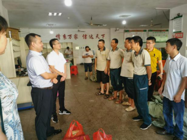宜春市分公司副總經(jīng)理、寄遞事業(yè)部常務(wù)副總盧東一行來到高安縣分公司分揀普服組送清涼,叮囑大家在保證安全生產(chǎn)的同時,要注意身體健康,合理安排作息,防止高溫中暑。