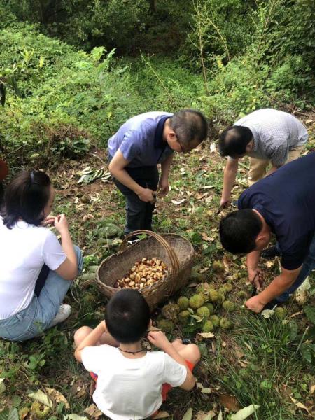 8月31日是廣水分公司永陽支局公休日,但是這天一大早就能看見支局員工穿著輕便的衣服,拿著菜籃子在支局門口聊天嬉鬧,看他們這么開心,原來是支局要組織去戶外采摘板栗。
