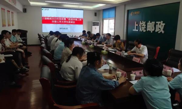 為進一步了解新入職大學(xué)生的工作和生活情況,為新入職大學(xué)生答疑解惑、樹立信心。8月23日下午,上饒市分公司和市郵政工會聯(lián)合召開了2019年校招暨“團圓幸福工程”回饒工作大學(xué)生座談會。市分公司總經(jīng)理、市寄遞事業(yè)部總經(jīng)理呂茂華,市分公司副總經(jīng)理劉穎蕾參會。