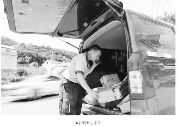 月亮仍然掛在空中,平整干凈的道路上駛過一輛滿載著信件的郵車,快遞員谷明洲正在車內(nèi)計劃著一天的投遞流程。