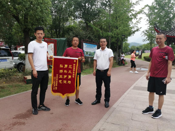 9月11日上午,張家界郵政工會(huì)正在張家界新外灘碼頭舉行“慶祝建國(guó)70周年張家界有郵政職工趣味運(yùn)動(dòng)會(huì)”,比賽現(xiàn)場(chǎng)熱鬧非凡。此時(shí),一位男子,舉著一面錦旗朝著運(yùn)動(dòng)會(huì)現(xiàn)場(chǎng)趕來(lái),突如其來(lái)的一幕,讓大家驚嘆不已。