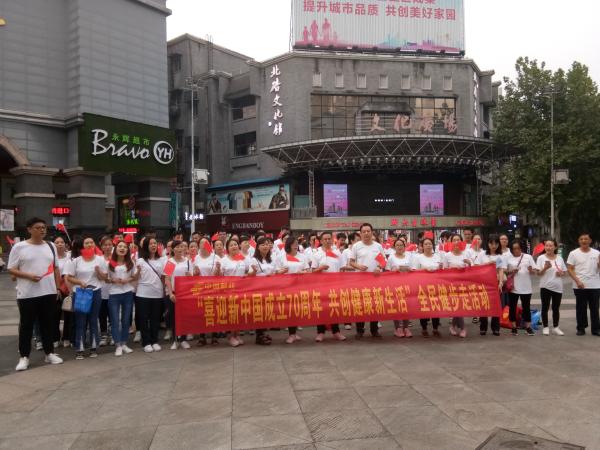 為迎接新中國成立70周年,營造積極向上的企業(yè)文化氛圍,同時為“攜手健步走,活過99“活動加大宣傳造勢。9月6日傍晚,重慶市北碚分公司組織70余名職工開展了“喜迎新中國成立70周年 共創(chuàng)健康新生活”全員健步走活動。全體員工統(tǒng)一著裝,圍繞北碚人流量最密集區(qū)域,通過高舉五星紅旗分兩路開展健步運動,主動向周邊市民和過路行人介紹活動目的并邀請合影打卡的方式,吸引了市民的廣泛參與和頻頻點贊,同時發(fā)放定制宣傳折頁引導(dǎo)市民去附近營業(yè)廳領(lǐng)取小禮品,增進(jìn)網(wǎng)點客流量,進(jìn)一步擴(kuò)大了活動宣傳力度。經(jīng)過一小時的健步行走和宣傳,最后全體員工手持紅旗在文化廣場匯合并現(xiàn)場合唱《歌唱祖國》向祖國致敬,將活動氛圍推向了最高潮。據(jù)悉,此次活動得到北碚電視臺的關(guān)注和現(xiàn)場采訪,進(jìn)一步提升了郵政的企業(yè)形象及公眾認(rèn)知度。