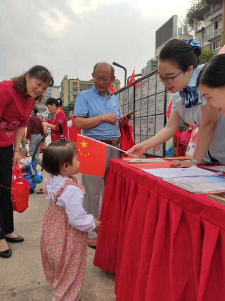 9月24日,重慶市沙坪壩區(qū)井口街道徜徉在一片紅色的海洋中,嘹亮的《我和我的祖國(guó)》伴隨著太陽(yáng)升起。沙坪壩區(qū)分公司井口郵政所應(yīng)邀參加街道組織的“禮贊新中國(guó) 奮斗新時(shí)代”慶?;顒?dòng),向廣大居民展示郵政企業(yè)和員工的良好精神風(fēng)貌,向偉大祖國(guó)獻(xiàn)上最真摯的生日祝福?;顒?dòng)上,井口郵政所的小伙伴們手執(zhí)國(guó)旗,向過(guò)往的居民群眾介紹郵政企業(yè)與共和國(guó)一同走過(guò)的崢嶸歷程,并通過(guò)郵展的形式,向他們講述了郵票上的偉大歷史。參與政府組織的公益活動(dòng),踐行“人民郵政為人民”的宗旨,拉進(jìn)與老百姓的距離,走向老百姓心中。