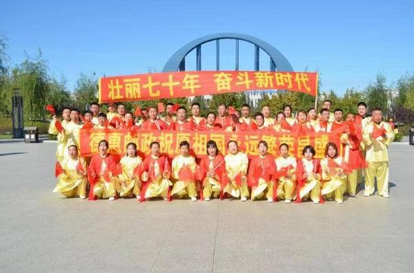 郵政職工把愛國之情融入到太極拳的一招一式之中,并排列出70和五角星隊(duì)形,寓意慶祝祖國70周年華誕。當(dāng)大家一邊揮舞著國旗,一邊呼喊著“我愛你,中國;我愛你,郵政”的口號(hào)時(shí),每個(gè)人的心情都十分激動(dòng)。太極拳結(jié)束后,大家打出“德惠郵政祝愿祖國永遠(yuǎn)繁榮昌盛”的條幅,表達(dá)對(duì)祖國的祝福。
