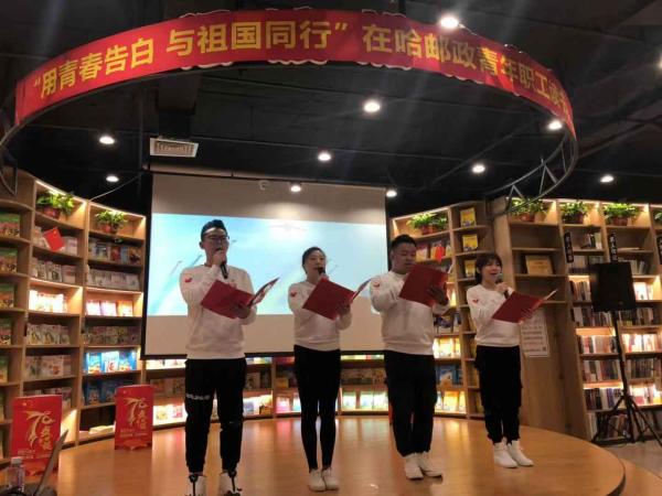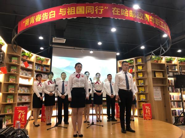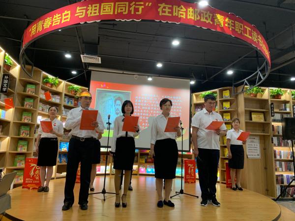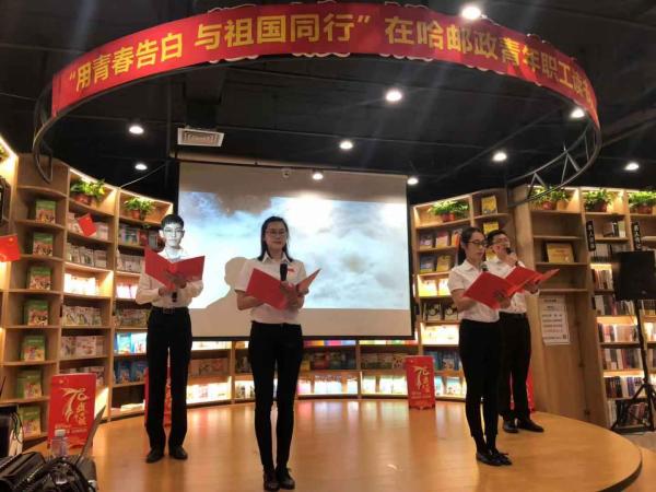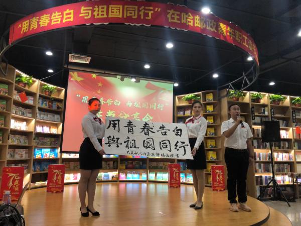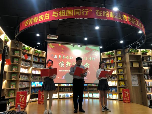 9月27日下午,為熱烈慶祝建國(guó)70周年,進(jìn)一步激勵(lì)青年職工熱愛(ài)學(xué)習(xí)、積極向上,營(yíng)造書(shū)香郵政的濃厚氛圍,省郵政工會(huì)、哈爾濱市分公司報(bào)刊發(fā)行局黨支部、省分公司直屬機(jī)關(guān)團(tuán)委在郵政匯文書(shū)愿舉辦了“用青春告白 與祖國(guó)同行”在哈郵政青年職工慶祝建國(guó)70周年讀書(shū)分享會(huì)活動(dòng),省寄遞事業(yè)部、哈爾濱市分公司、哈爾濱郵區(qū)中心局、省機(jī)要通信局、省信息技術(shù)局、省分公司機(jī)關(guān)、中郵保險(xiǎn)黑龍江分公司、中郵證券黑龍江分公司等在哈郵政單位的百余名青年職工參加了此項(xiàng)活動(dòng),省分公司黨組成員、紀(jì)檢組組長(zhǎng)任宣,省分公司辦公室、人力資源部、審計(jì)部、黨建工作部、集郵與文化傳媒部以及省郵政工會(huì)的負(fù)責(zé)人蒞臨了讀書(shū)分享會(huì)現(xiàn)場(chǎng)。