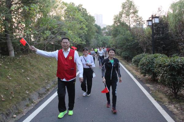 一路上,各參加活動人員沐浴著朝陽的光輝,在晨風的輕拂中,興致高昂,揮舞著手中的國旗闊步向前。大家三個一群,五個一伙,一路上歡聲笑語不斷。在森林公園天然的氧吧中,隊員們拋掉煩惱,釋放壓力,步伐矯健地走向終點。在整個活動過程中,大家謹遵活動規(guī)則,始終保持了良好的活動秩序,愛護公共衛(wèi)生,踴躍學習、回答黨建題目,展現(xiàn)出撫州郵政員工良好的精神面貌。