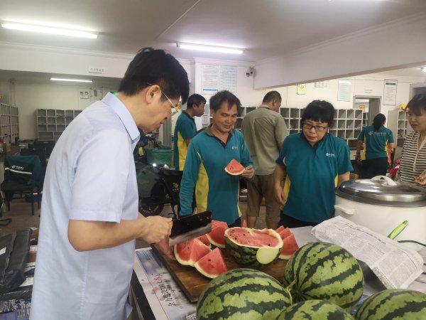 現(xiàn)場(chǎng)區(qū)公司領(lǐng)導(dǎo)首先感謝了一線投遞員克服酷暑,堅(jiān)守崗位,為企業(yè)正常生產(chǎn)運(yùn)營(yíng)做出的無私貢獻(xiàn)。表示今年高溫天氣來的猛烈,持續(xù)的高溫給大家生活工作帶來了不小的困擾,工會(huì)會(huì)最大限度地滿足員工需求,改善員工酷暑期間的工作條件,做安全保障工作的有力支撐點(diǎn),叮囑大家高溫天氣下要?jiǎng)谝萁Y(jié)合、及時(shí)補(bǔ)水、注意生產(chǎn)安全、用電安全。同時(shí)為剛剛回班的投遞員切西瓜,涼爽清甜的西瓜讓大家在炎炎夏季感受一絲絲清涼。(北京郵政工會(huì))