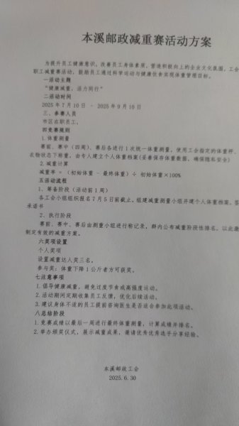 為相應(yīng)國家“體重管理年”三年行動,讓大家擁有健康身體,本溪郵政工會開展了為期2個月的職工減重比賽,吸引了90余人名職工參與此次活動,工會為每位參賽職工建立了健康檔案,督促大家減重。
